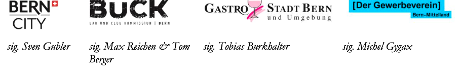 BernCITY, die Bar und Club Komission Bern und GastroStadtBern und Umgebung bitten Sie, dies in der aktuellen Revision der Härtefallverordnung zu berücksichtigen und die Versicherungsleistungen und sonstigen Entschädigungen im Zusammenhang mit der Covid-19 Pandemie nur für die entsprechende Periode in Abzug zu bringen.
